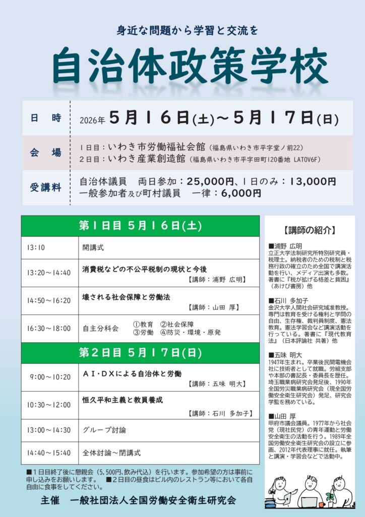 総会終了後、同会場において自治体政策学校を開催します。併せてご参加ください。