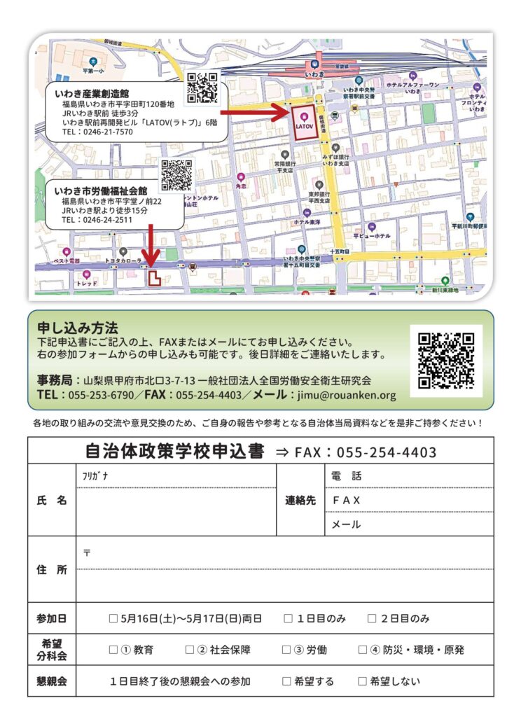 開催場所:いわき市労働福祉会館(福島県いわき市平字堂ノ前22)